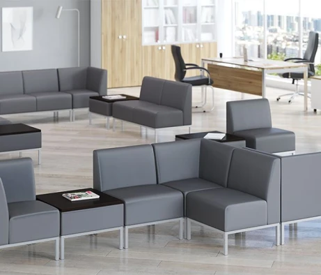 Для обеспечения максимального комфорта сотрудников выбраны ортопедические кресла Tema с выраженной поясничной поддержкой и регулировками. Для посетителей предусмотрены кресла Самба на металлических полозьях, а для руководителя – кресло Лондон в темно-сером цвете с литым подголовником и регулируемыми подлокотниками. Все кресла имеют хромированное основание, что отлично сочетается с остальными металлическими элементами мебели и помещения.