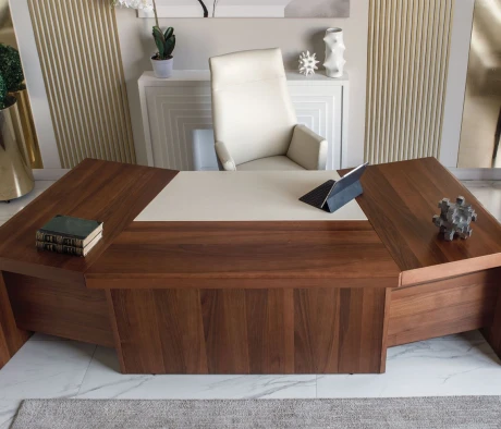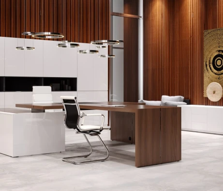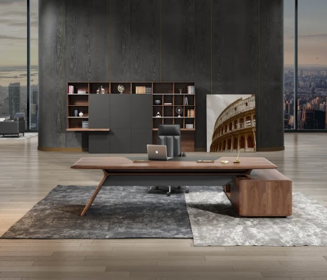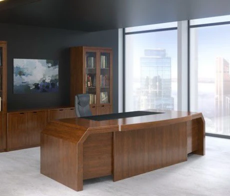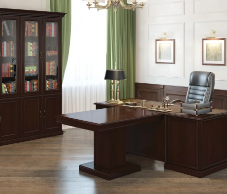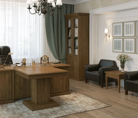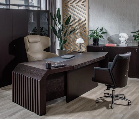 Остановился на этом варианте кабинета руководителя, долго думал какой взять. Наконец то дождались доставку, она была действительно долгой, но ничего, быстро собрали мебель зато. Прежде всего понравилось как мебель гармонирует с интерьером, как будто всю жизнь здесь стояла. Определенно это плюс, к качеству вопросов нет, отечественное производство на высшем уровне, спасибо!