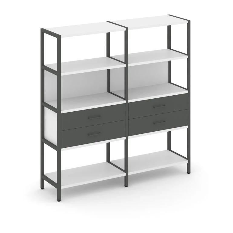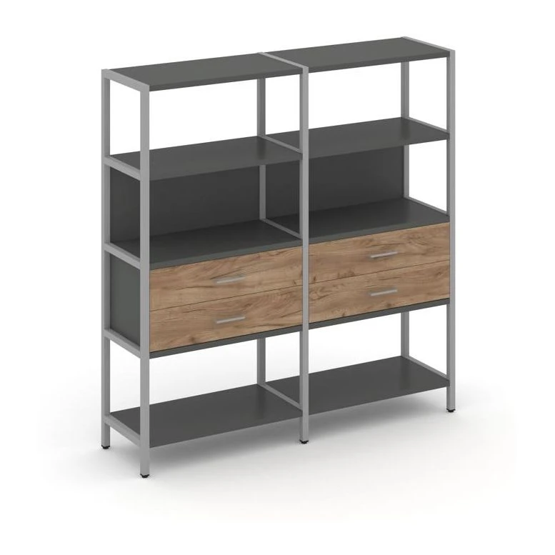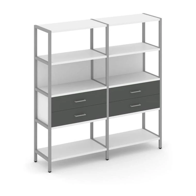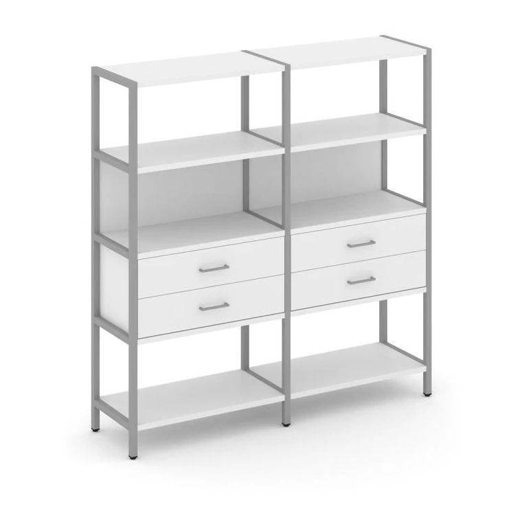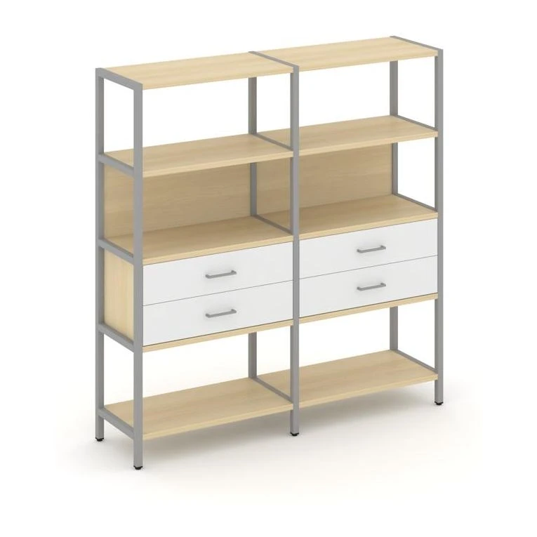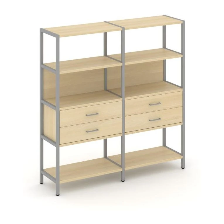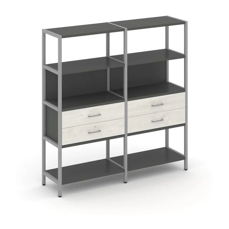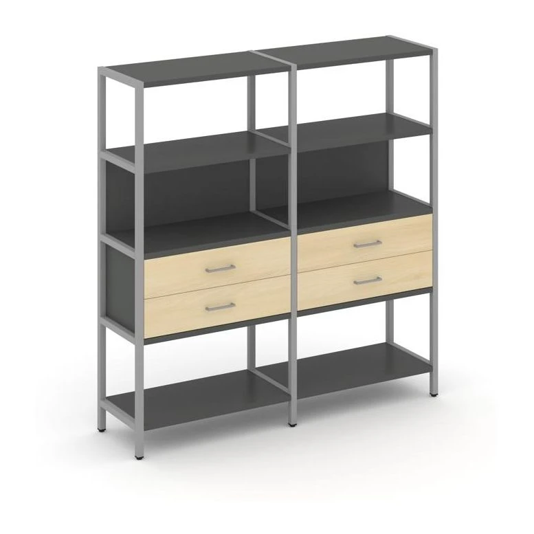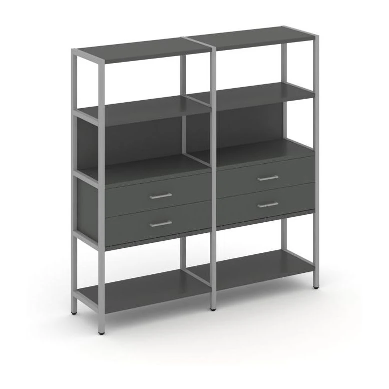 - Двухсекционный стеллаж четырехярусный с ящиками 1590х400х1613 Шелф Систем / Shelf System