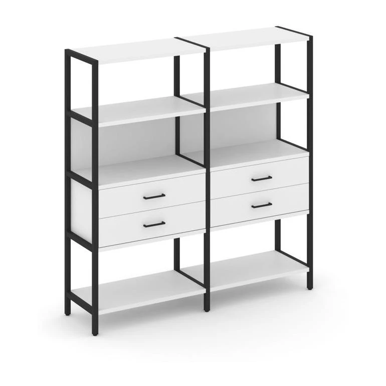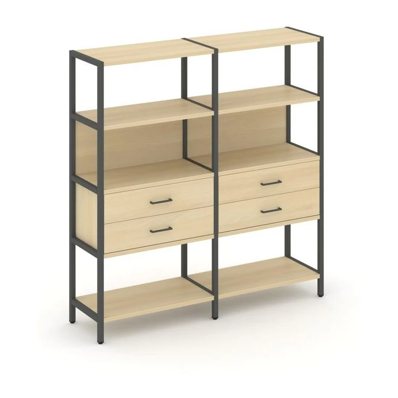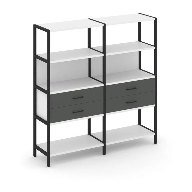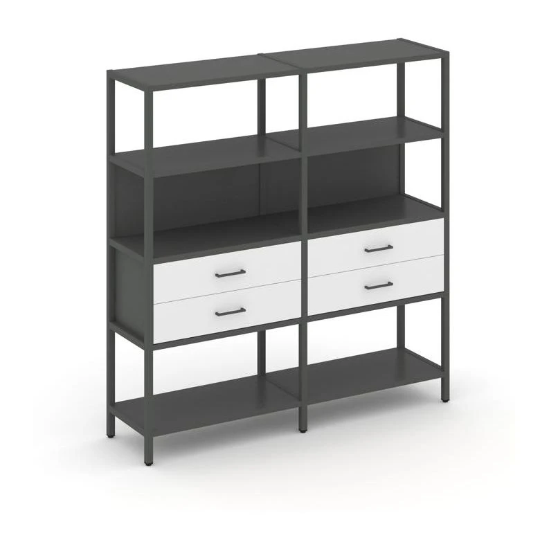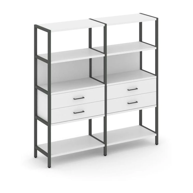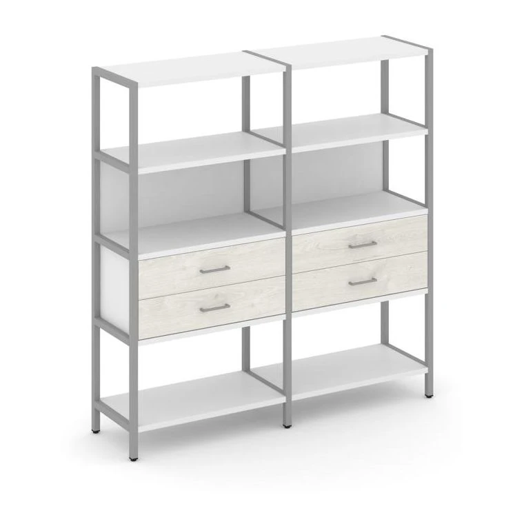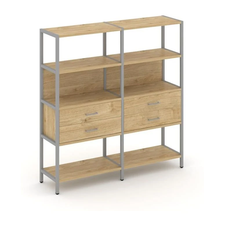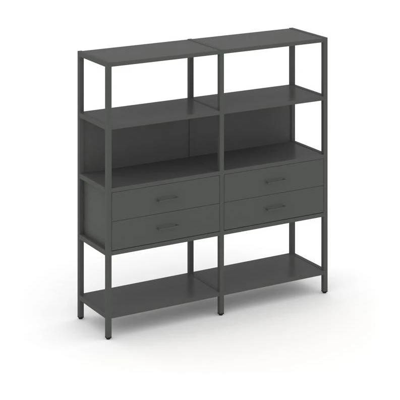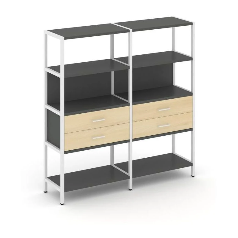 - Двухсекционный стеллаж четырехярусный с ящиками 1590х400х1613 Шелф Систем / Shelf System