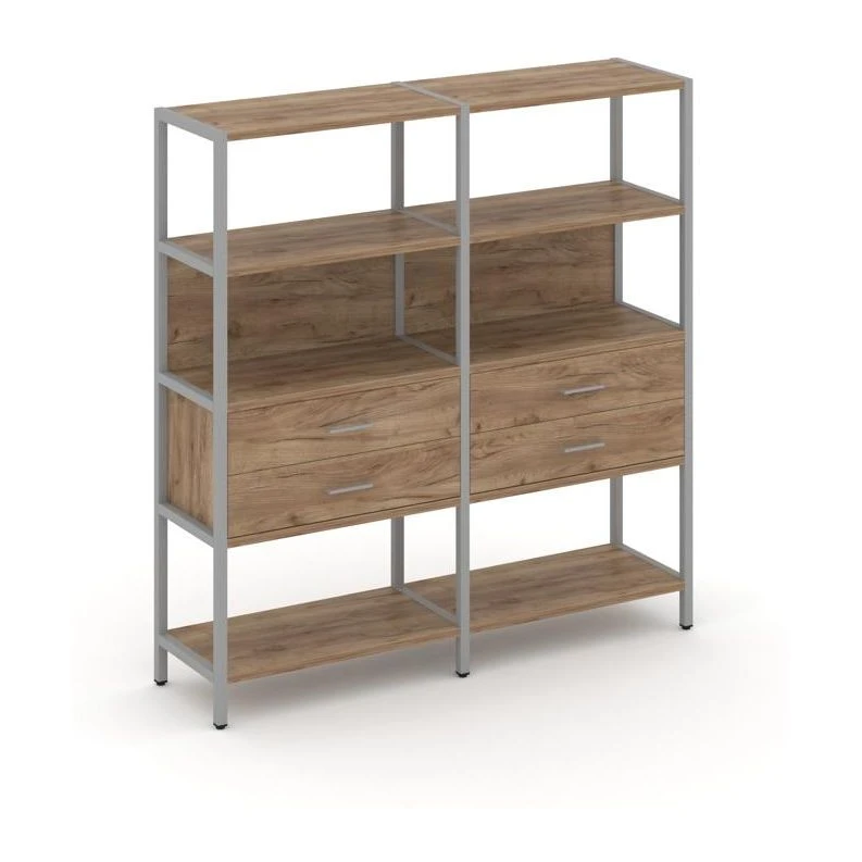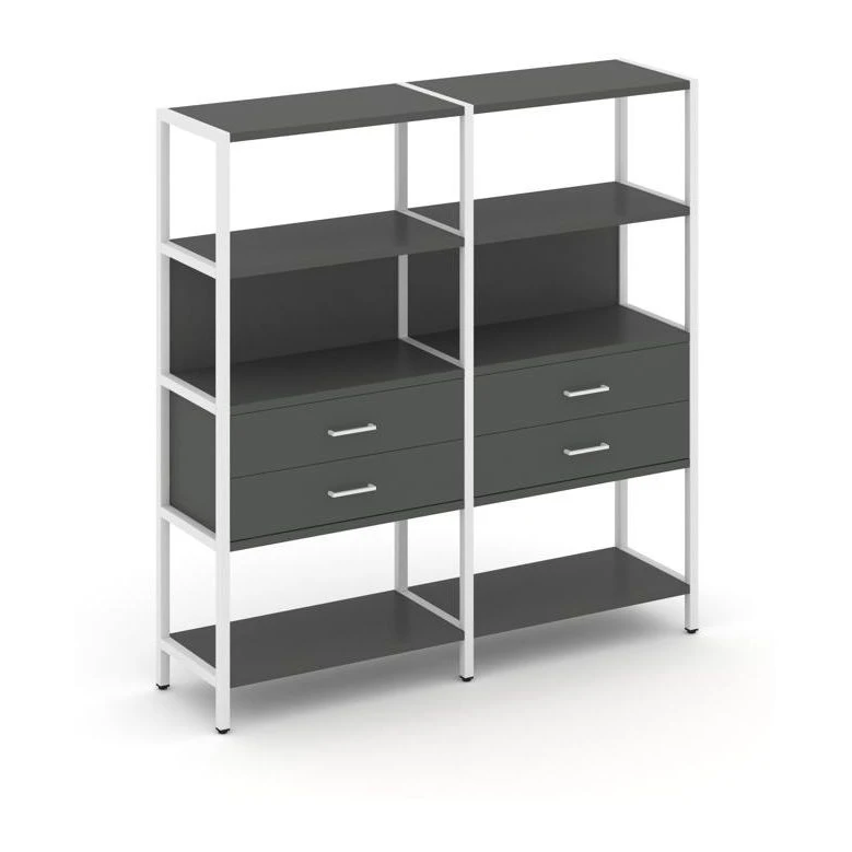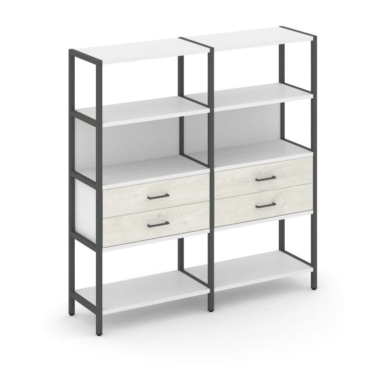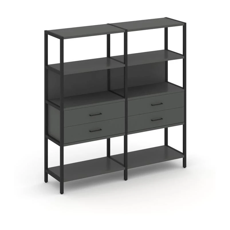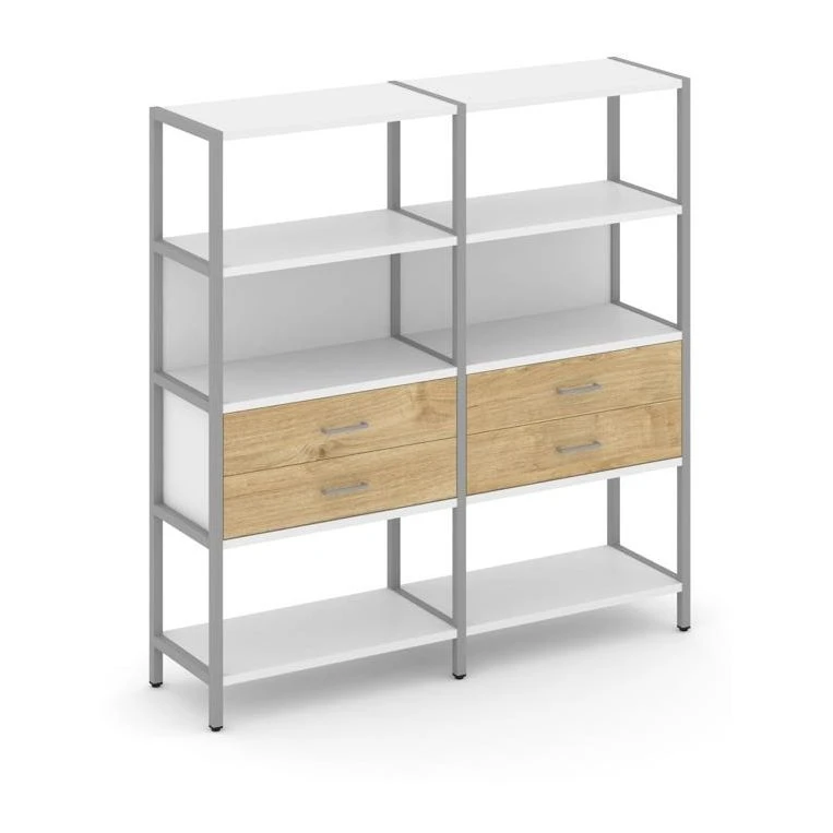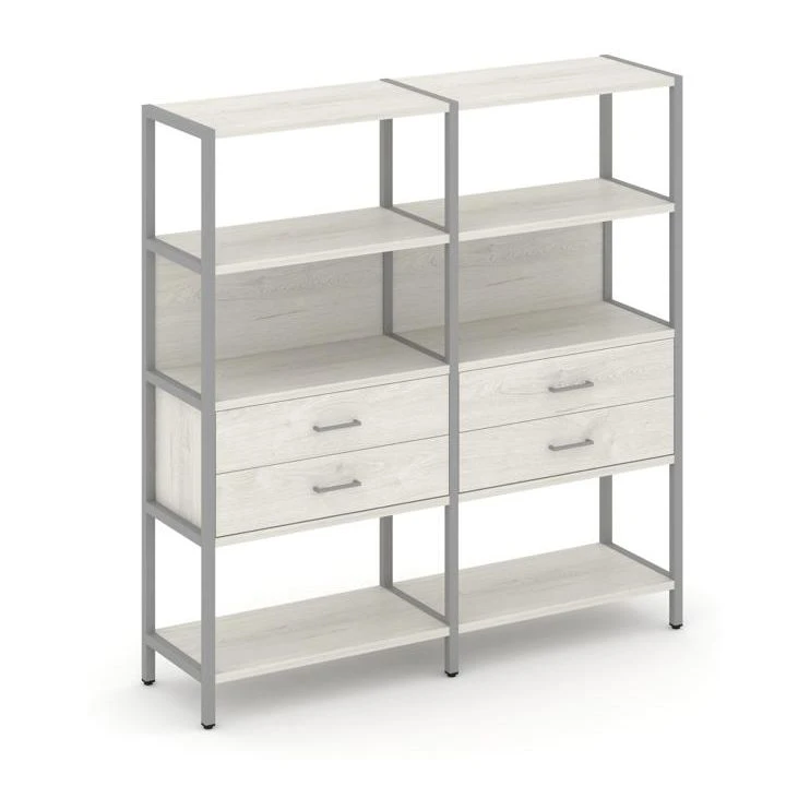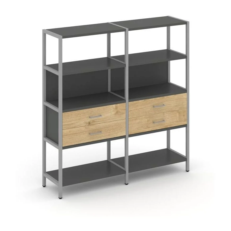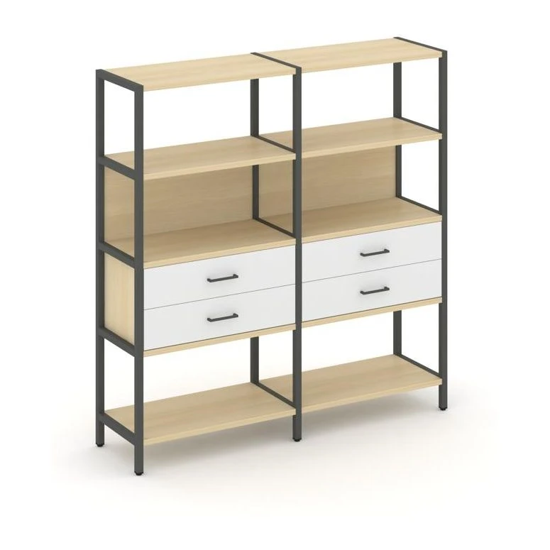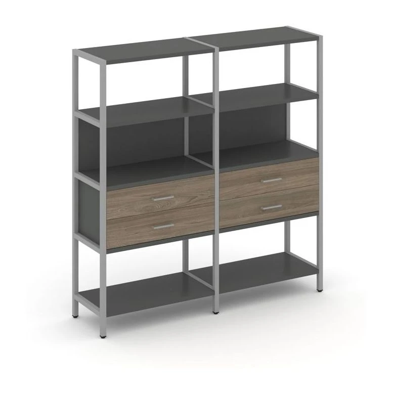 - Двухсекционный стеллаж четырехярусный с ящиками 1590х400х1613 Шелф Систем / Shelf System