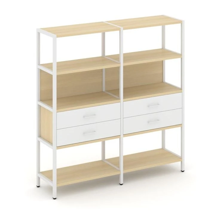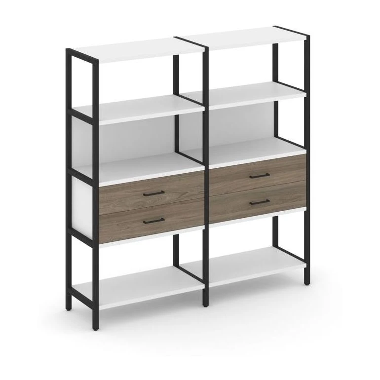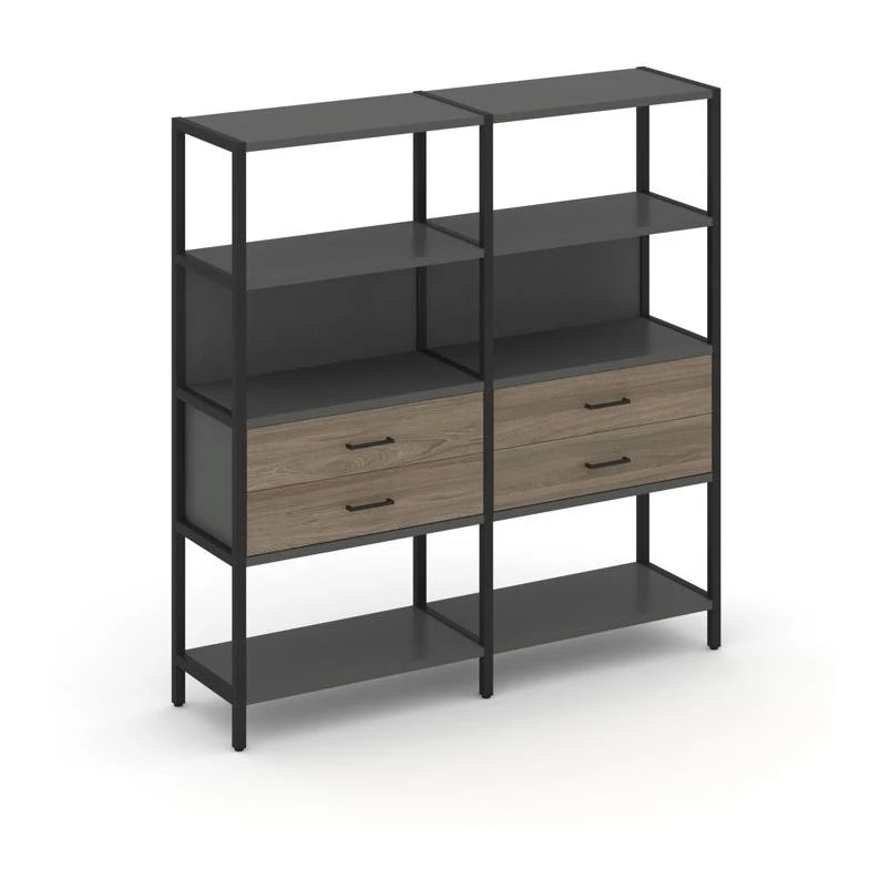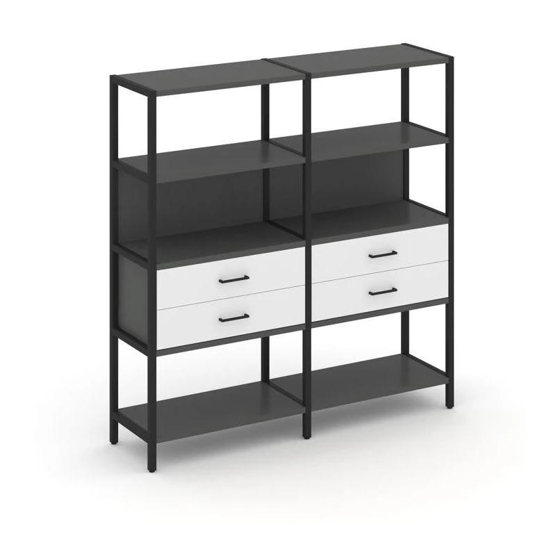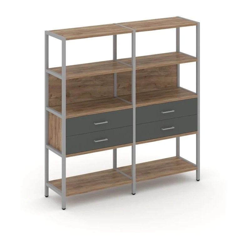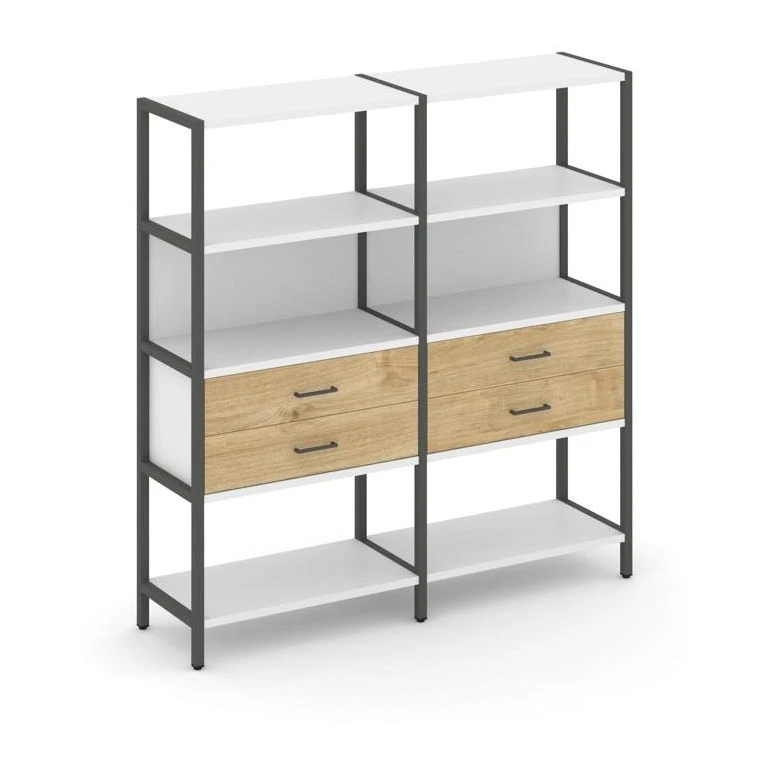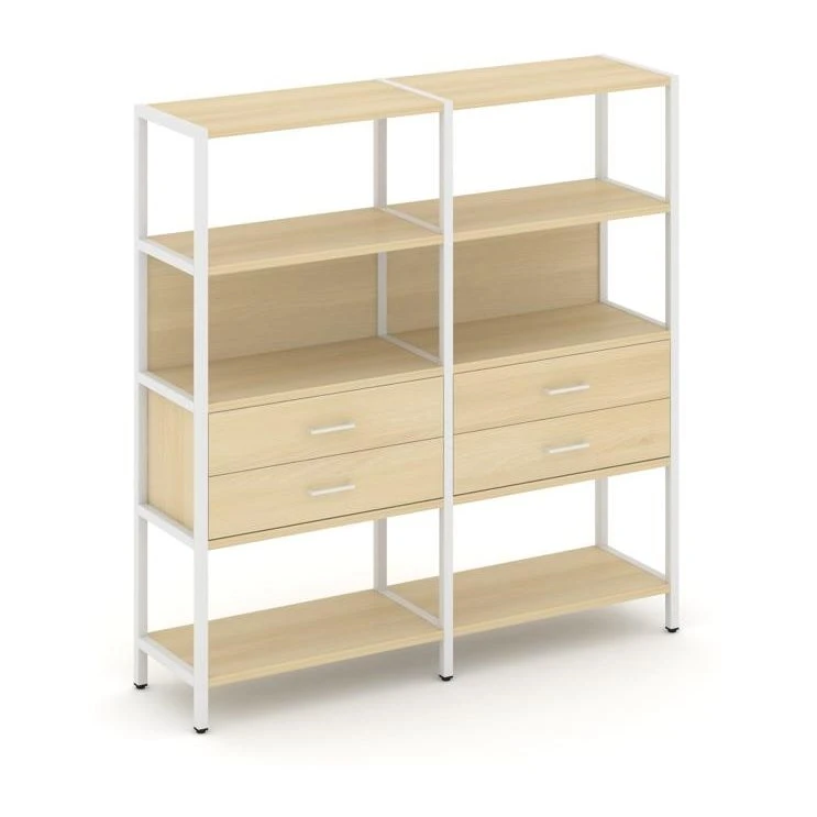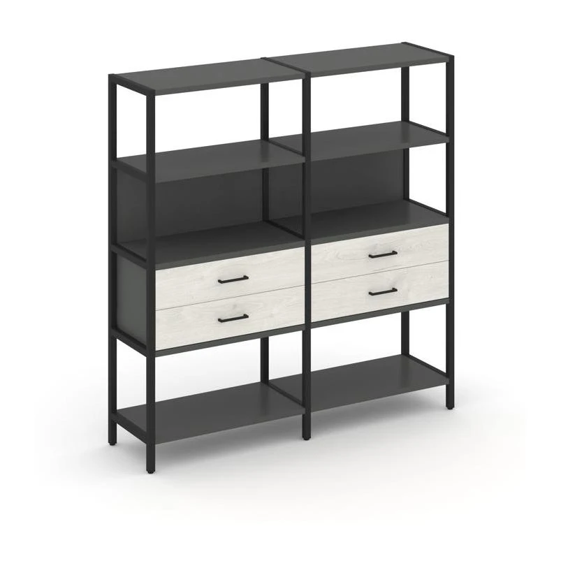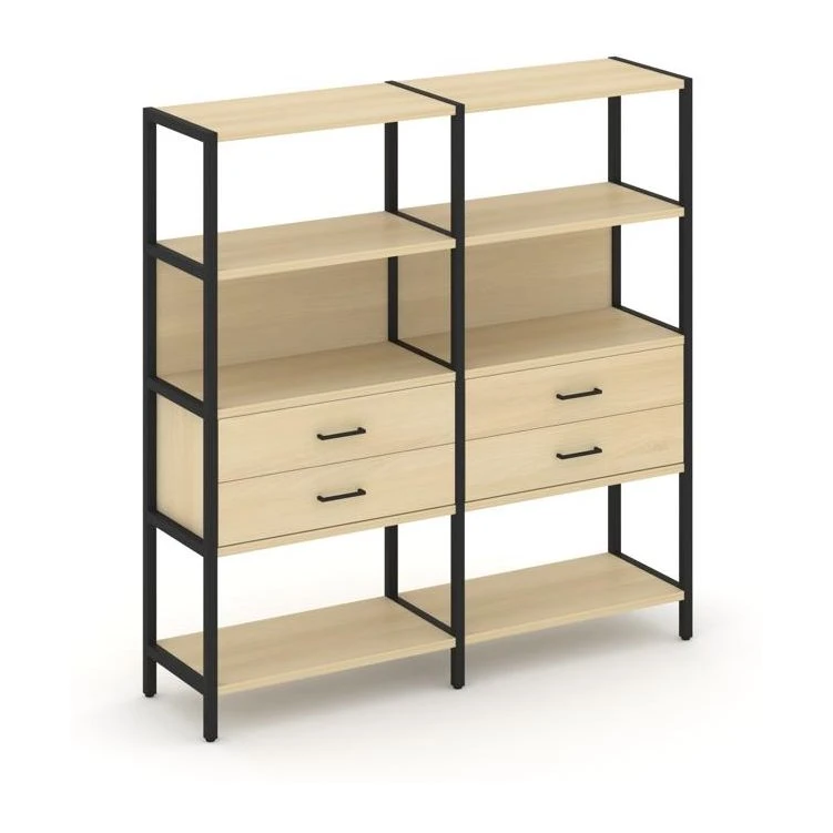 - Двухсекционный стеллаж четырехярусный с ящиками 1590х400х1613 Шелф Систем / Shelf System
