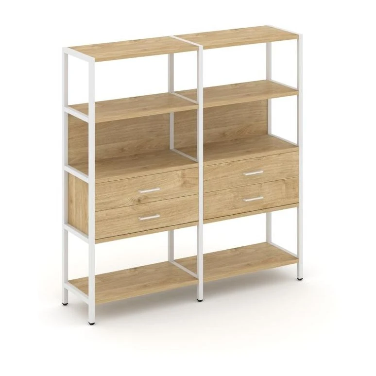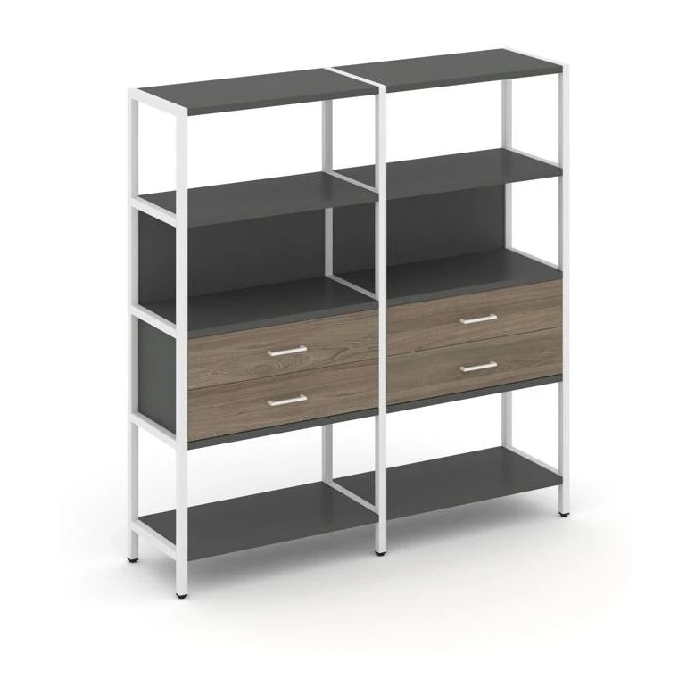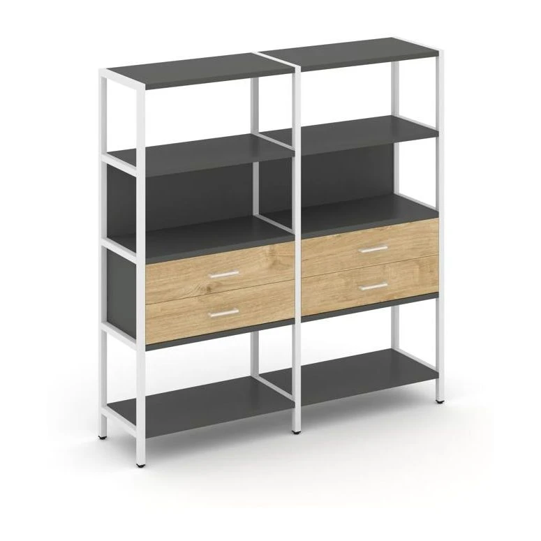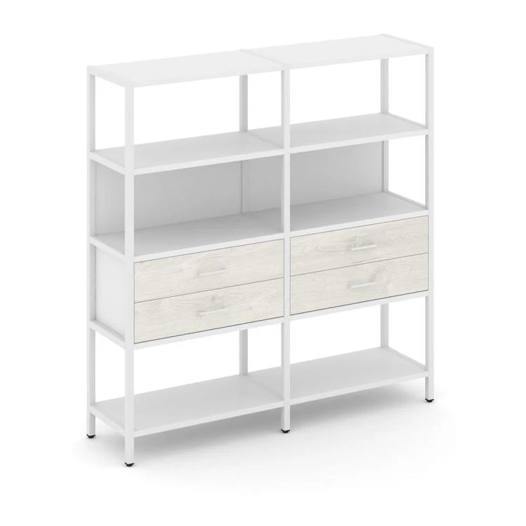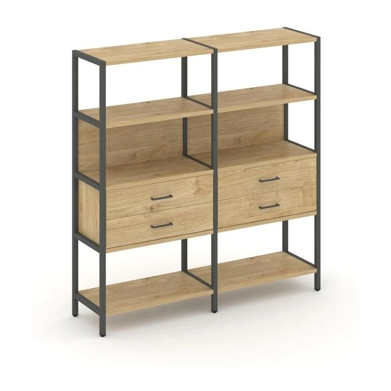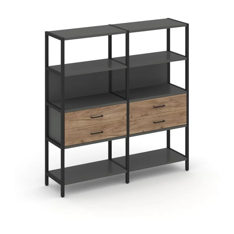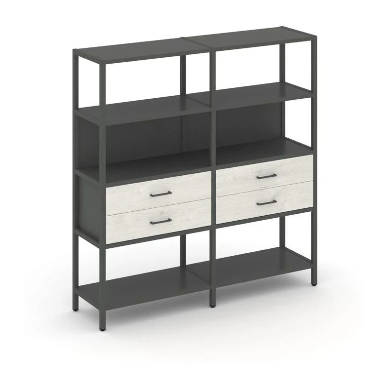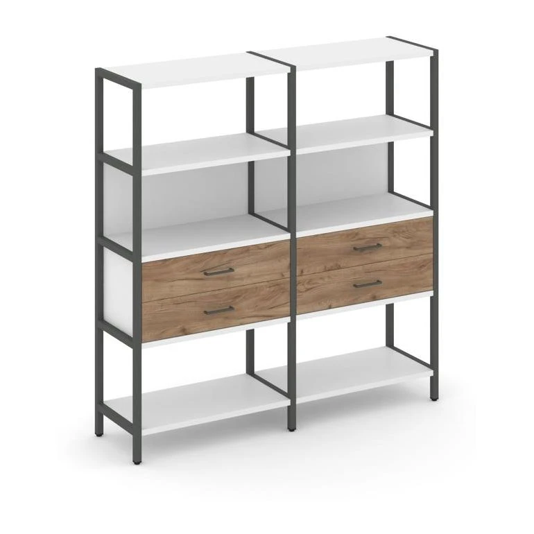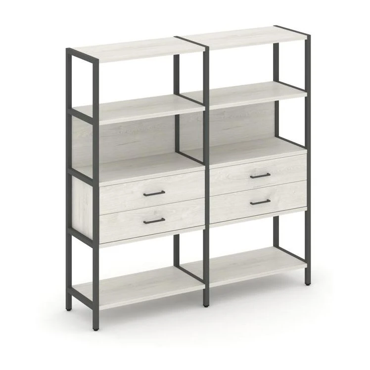 - Двухсекционный стеллаж четырехярусный с ящиками 1590х400х1613 Шелф Систем / Shelf System