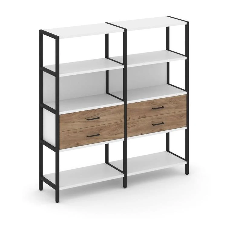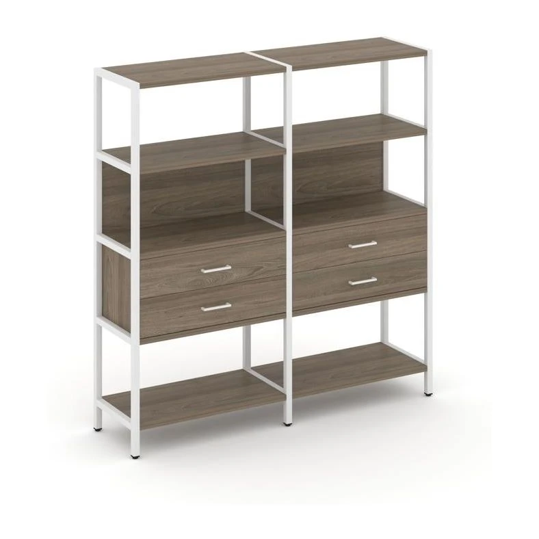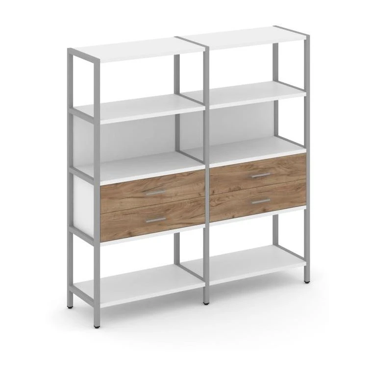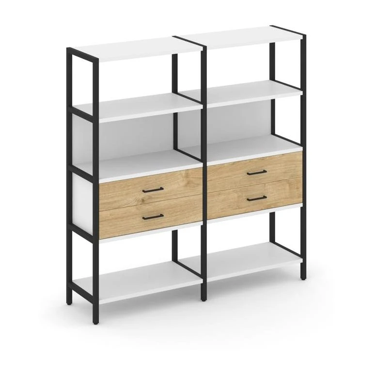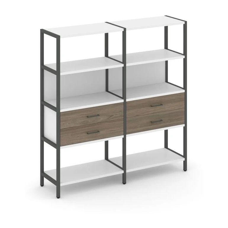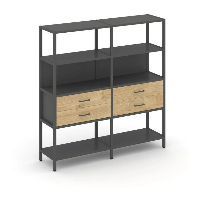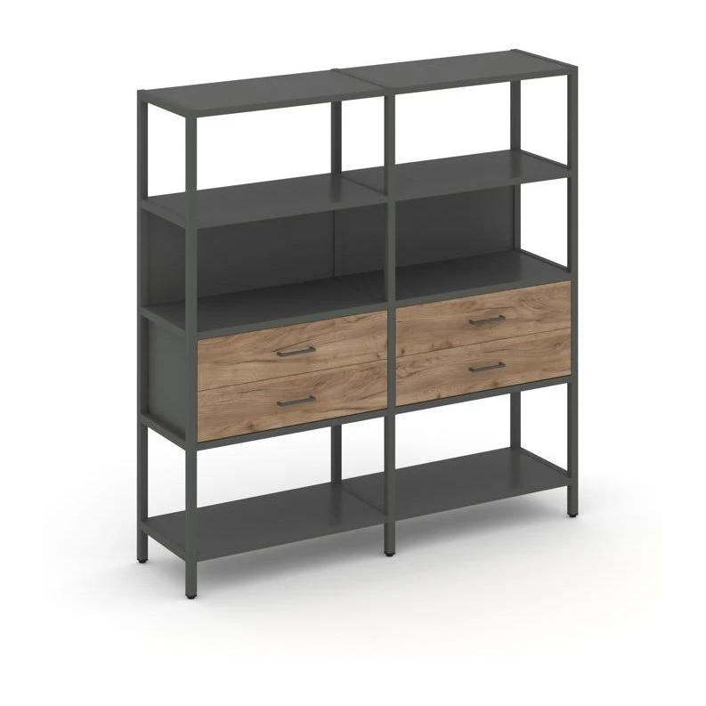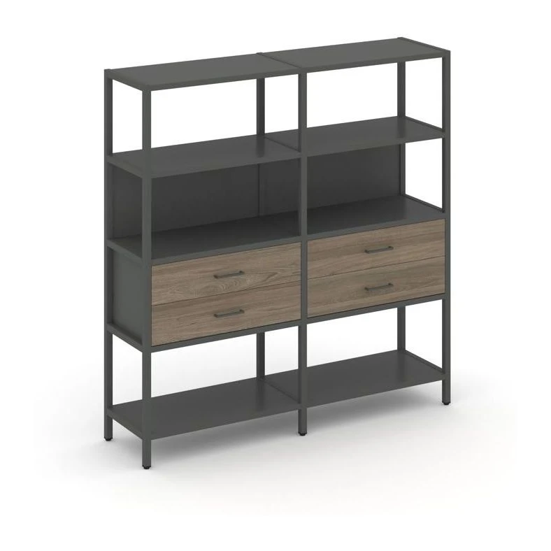 - Двухсекционный стеллаж четырехярусный с ящиками 1590х400х1613 Шелф Систем / Shelf System