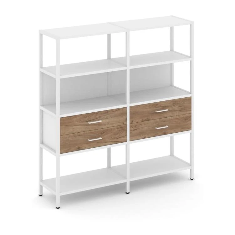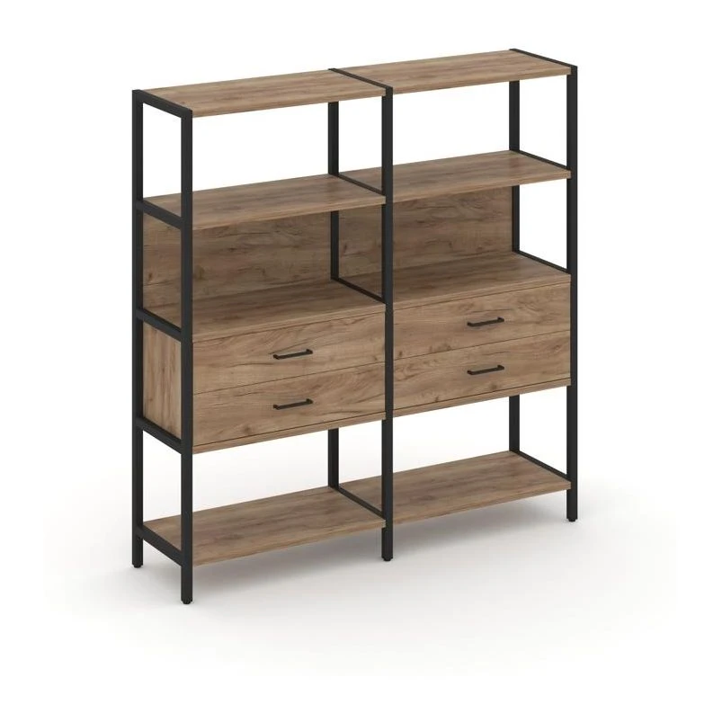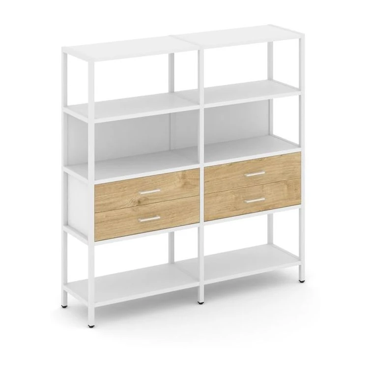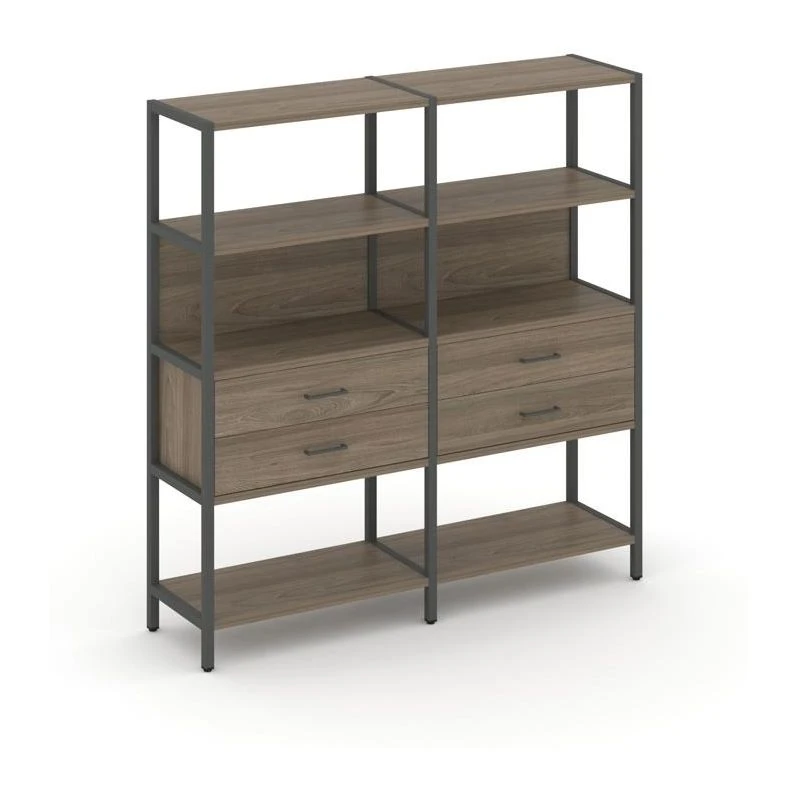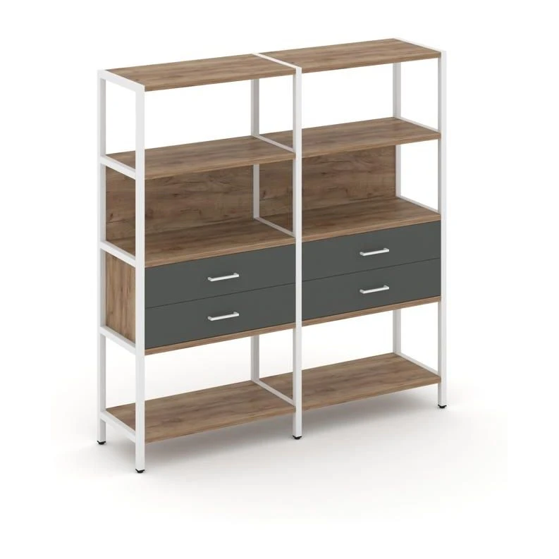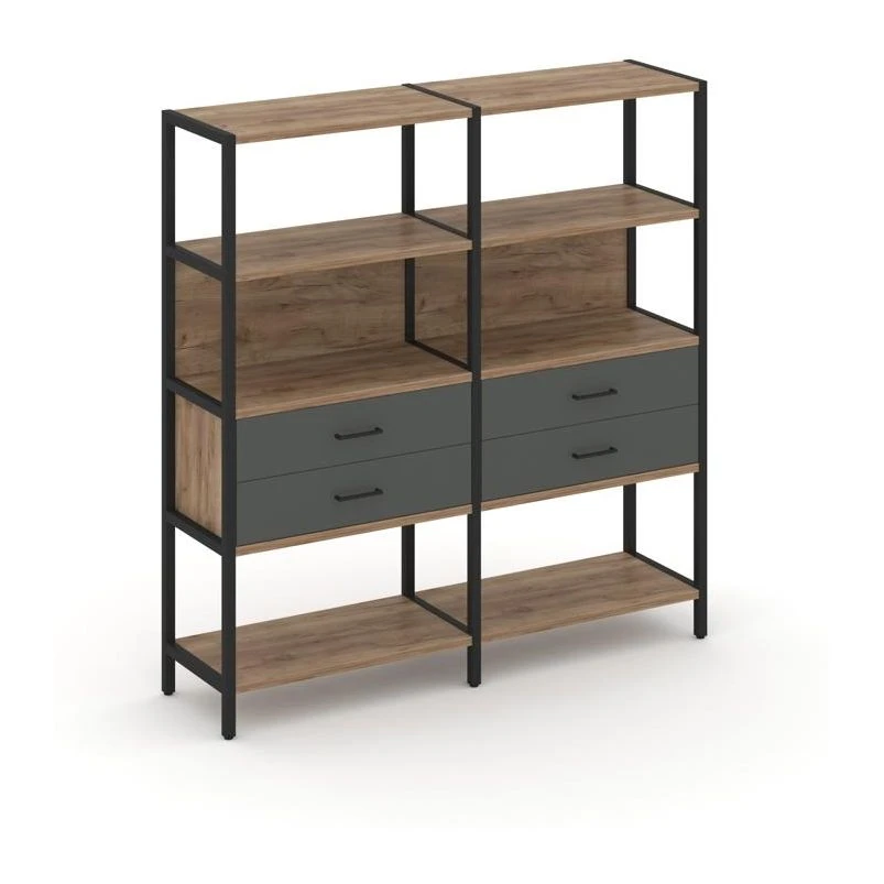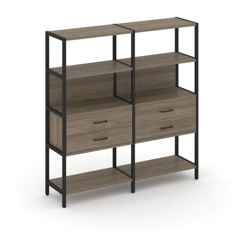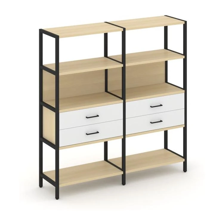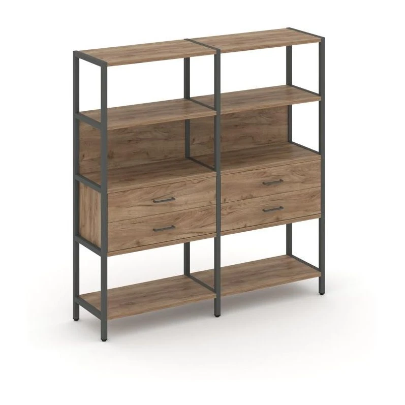 - Двухсекционный стеллаж четырехярусный с ящиками 1590х400х1613 Шелф Систем / Shelf System