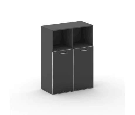 Двери: ЛДСП; лакированное стекло в алюминиевой рамке