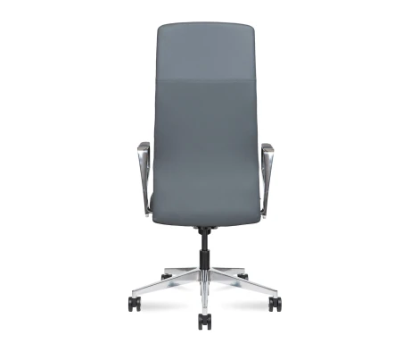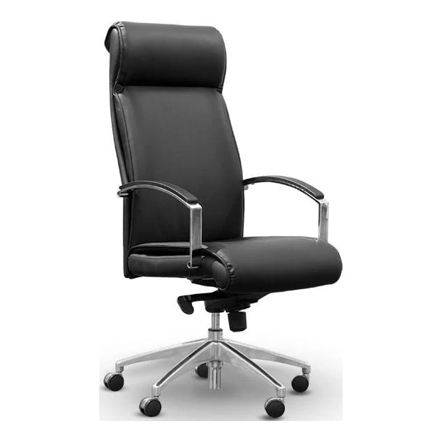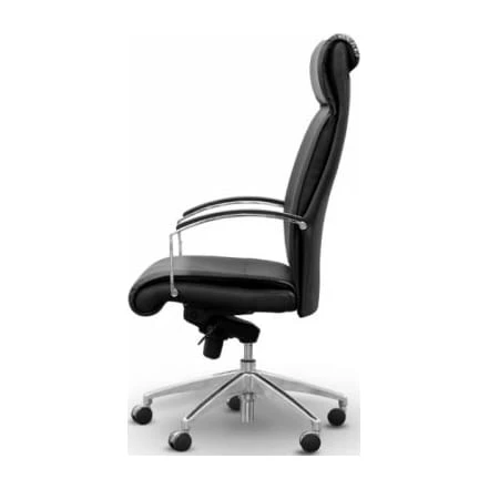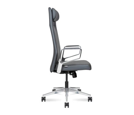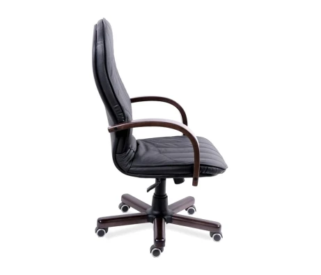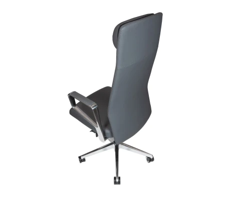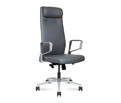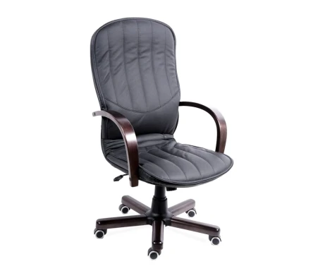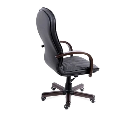 Заказать данное кресло для руководителя можно в обивке черного цвета из экокожи, в ансамбле с металлическими элементами это производит сильный визуальный эффект.