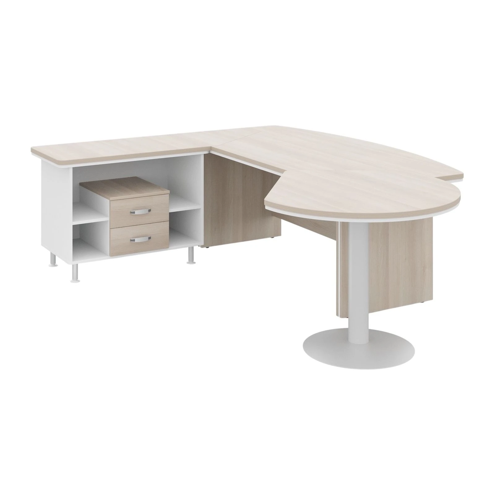 Стол руководителя угловой с брифингом и встроенной тумбой L 235х205х76 Berlin Director Акация светлая/Белый премиум