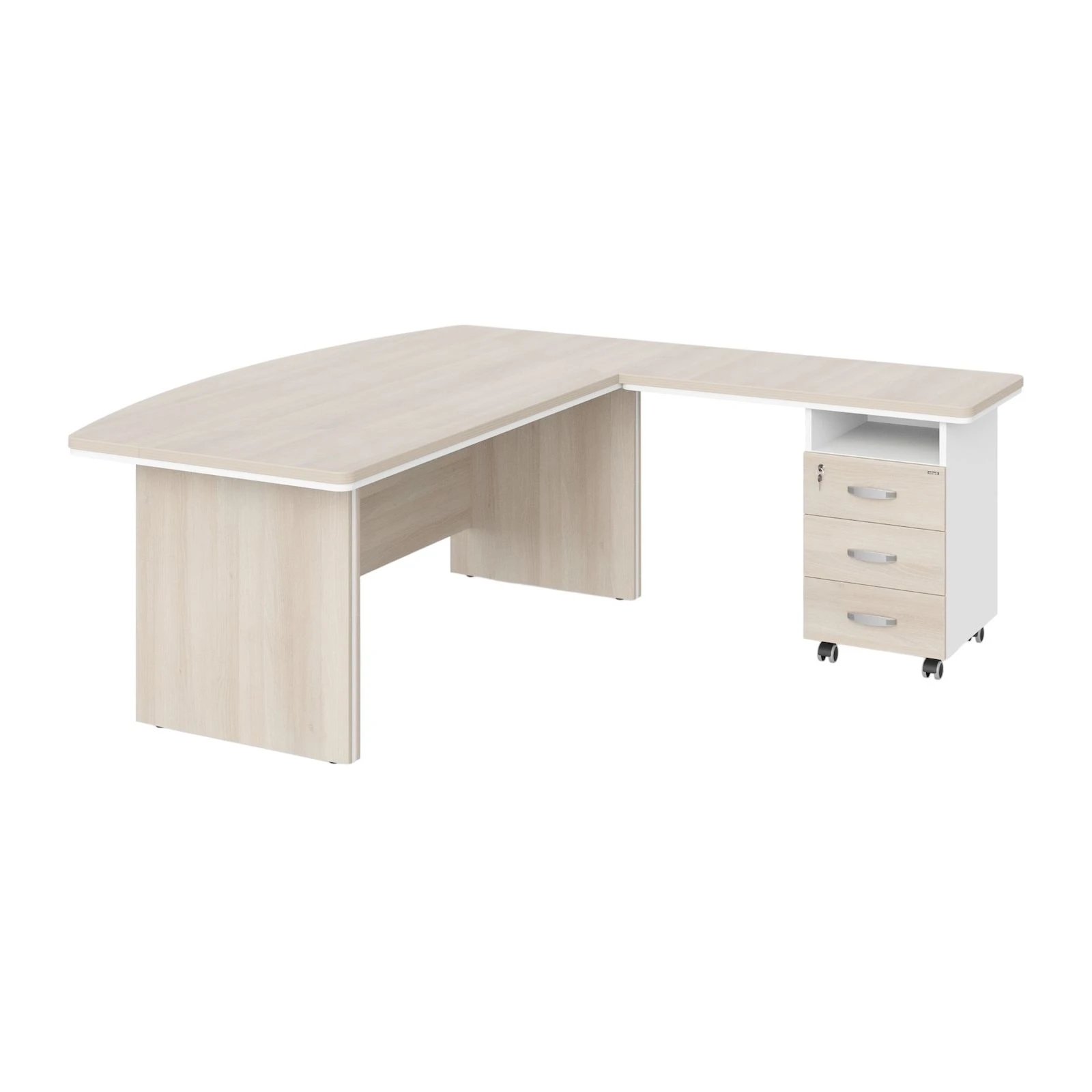 Стол руководителя угловой с тумбой 3 ящика R 180х205х76 Berlin Director Акация светлая/Белый премиум